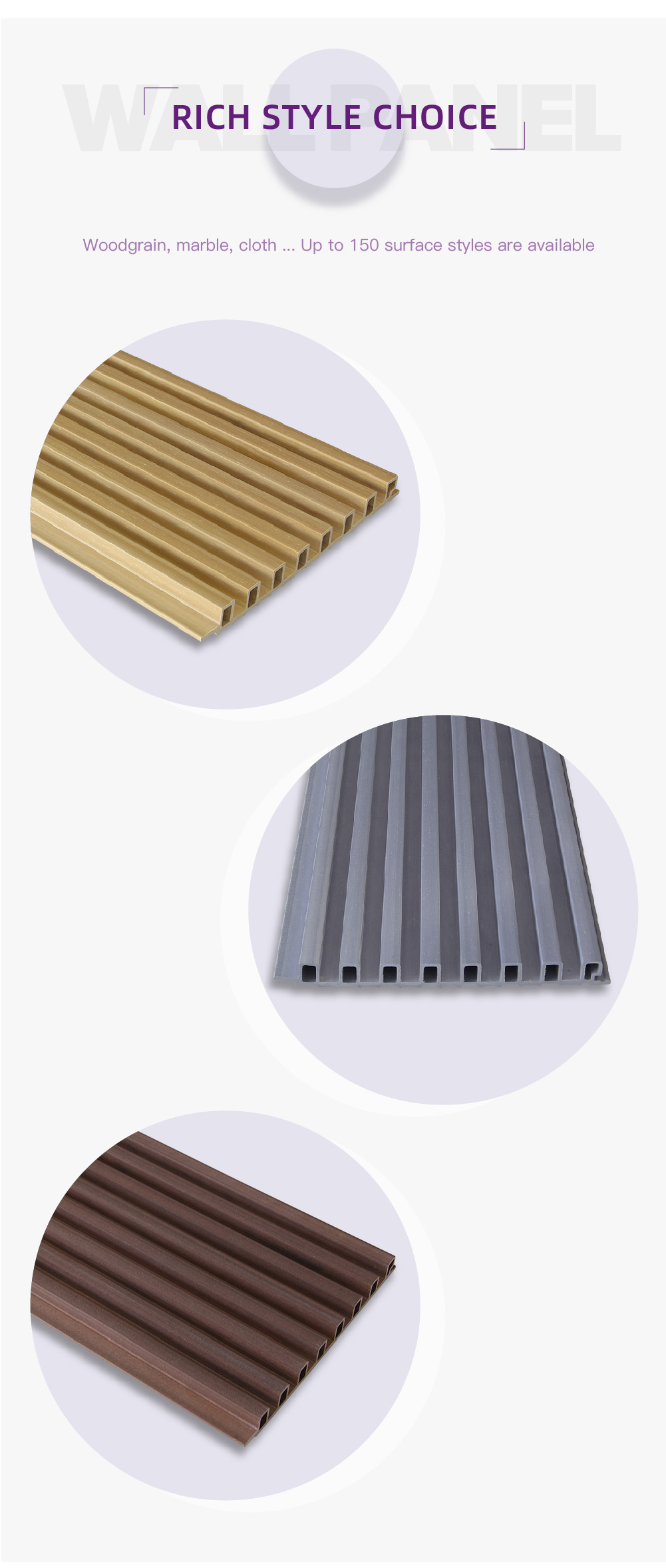 COOWIN® is an indoor WPC decoration material manufacturer that provides high-quality WPC wall panels, ceilings, timber tubes, etc. Our WPC wall panel product has a variety of designs and good price, suitable for bathroom, house decoration.