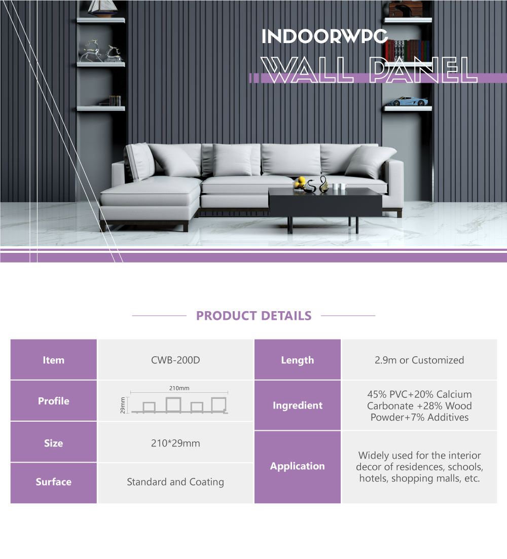 COOWIN® is an indoor WPC decoration material manufacturer that provides high-quality WPC wall panels, ceilings, timber tubes, etc. Our WPC wall panel product has a variety of designs and good price, suitable for bathroom, house decoration.