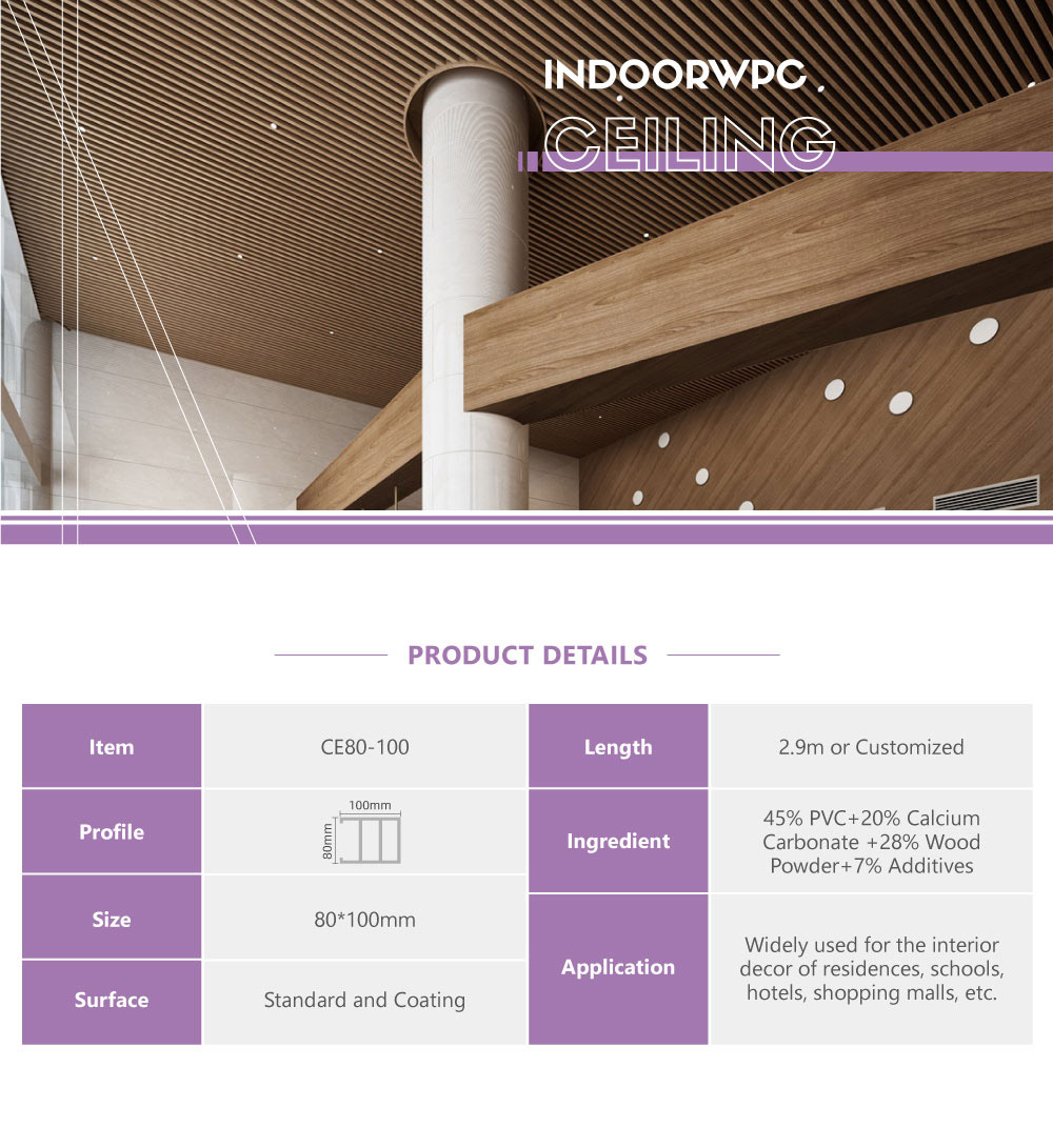 Home > Product > Ceiling > WPC Ceiling > WPC Low-maintenance Interior Ceiling CE80-100